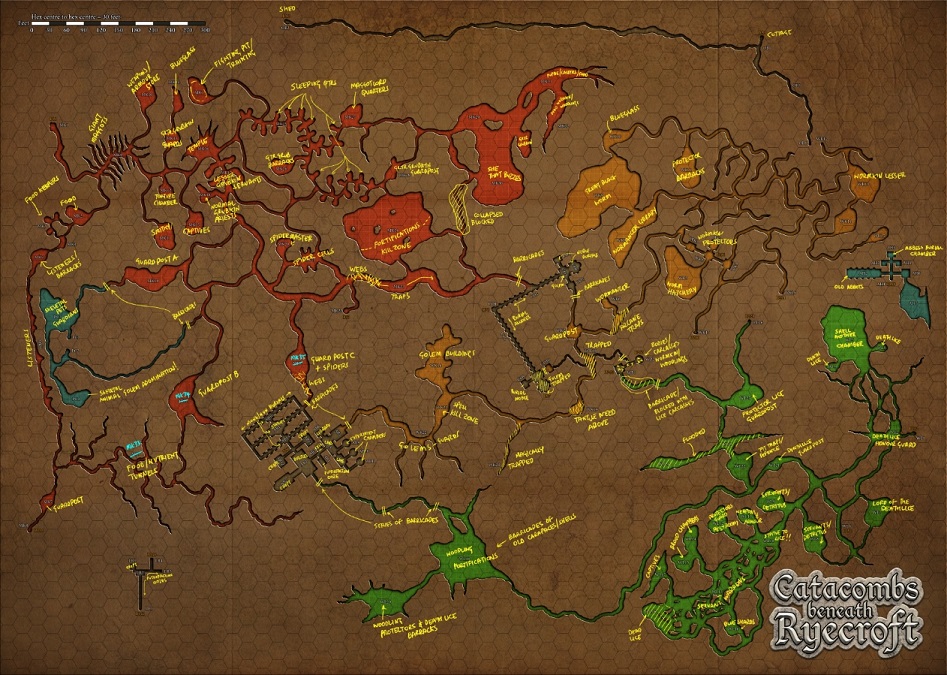 And this is my marked up notes for the below ground map… the colours indicate faction areas…